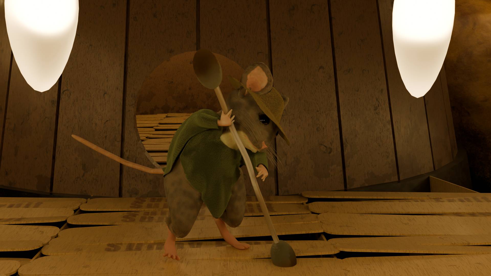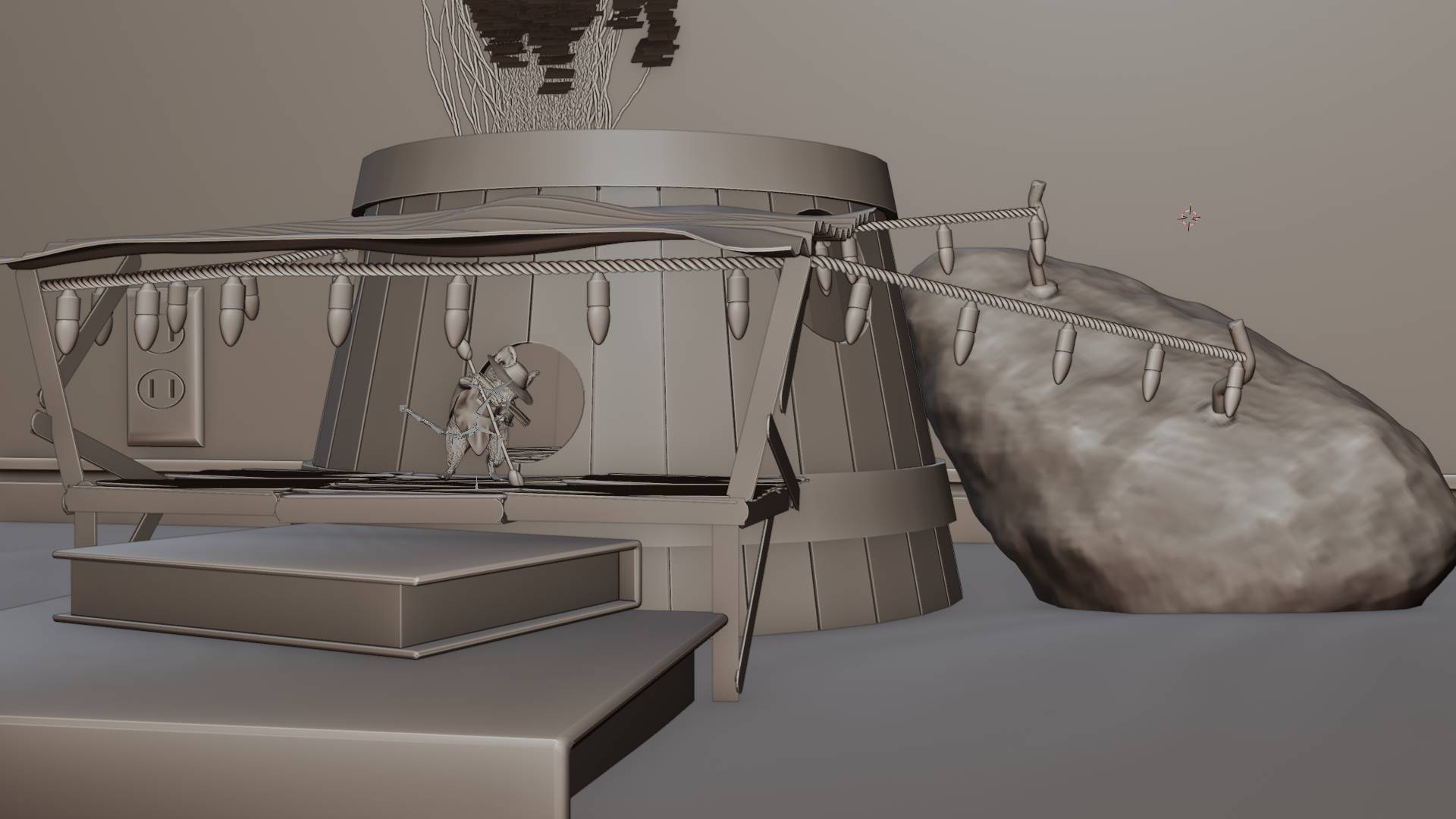 Hi everyone! This is a little solo project I made for Kiri's 3d modeling jam. The theme was environmentally friendly, which I accomplished by having our little buddy's lights powered by a potato battery. I initially had no idea what I was going to do for this. Most of the first day was me coming up with ideas and then finally getting to it. It took roughly 3 full days of nonstop work. NO AI WAS USED IN THIS PROJECT. All models and textures were made by me. The only texture I did not make was the one for the ivy, and I got that from BlenderKit. I hope you guys like it! Let me know if there are any problems with the files, and I'll try to repack them. Be warned, it is not low-poly, so it may freeze on ya.